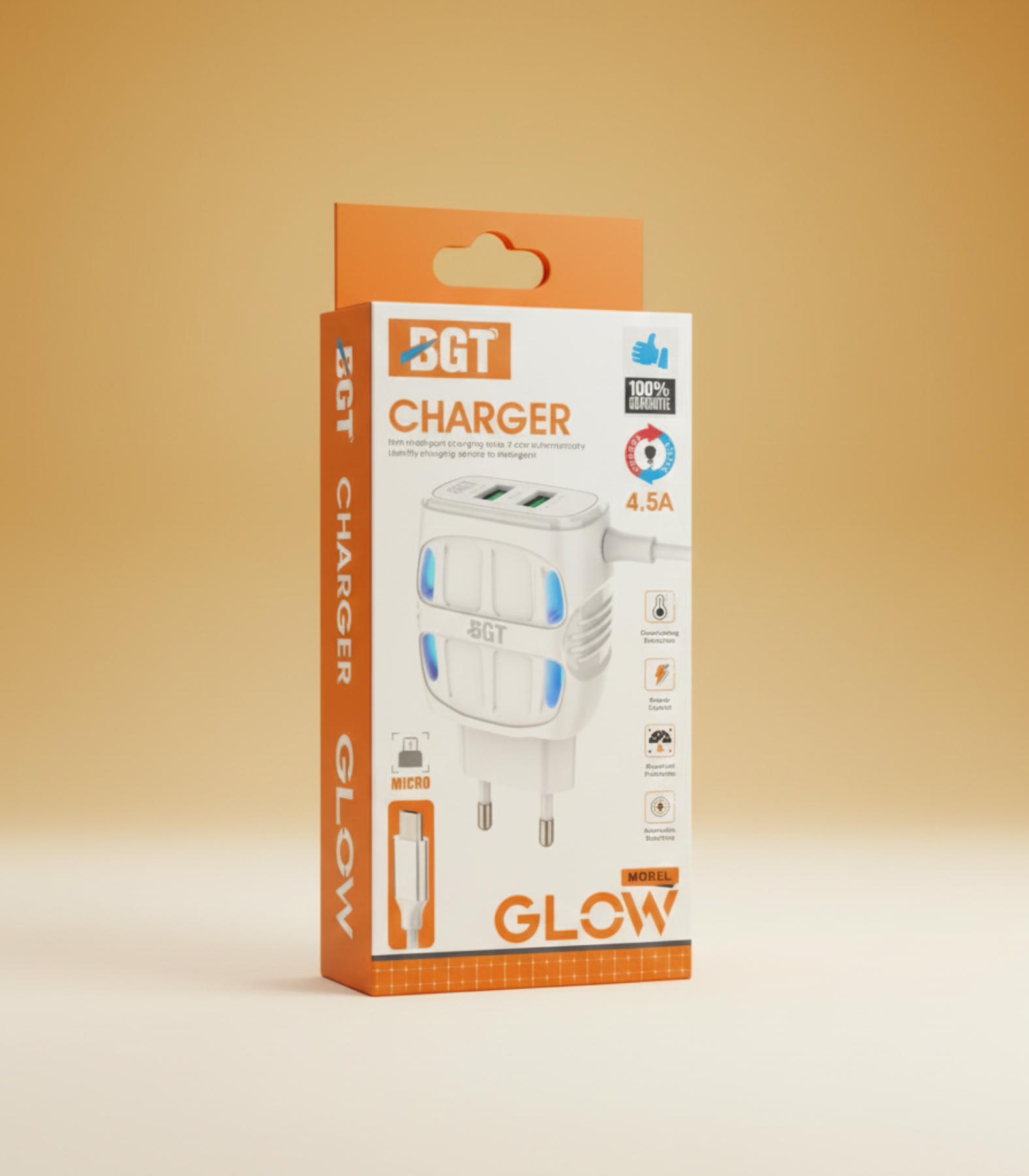 BGT Morel Glow 4.5A Fast Charger – Dual USB & Micro Cable